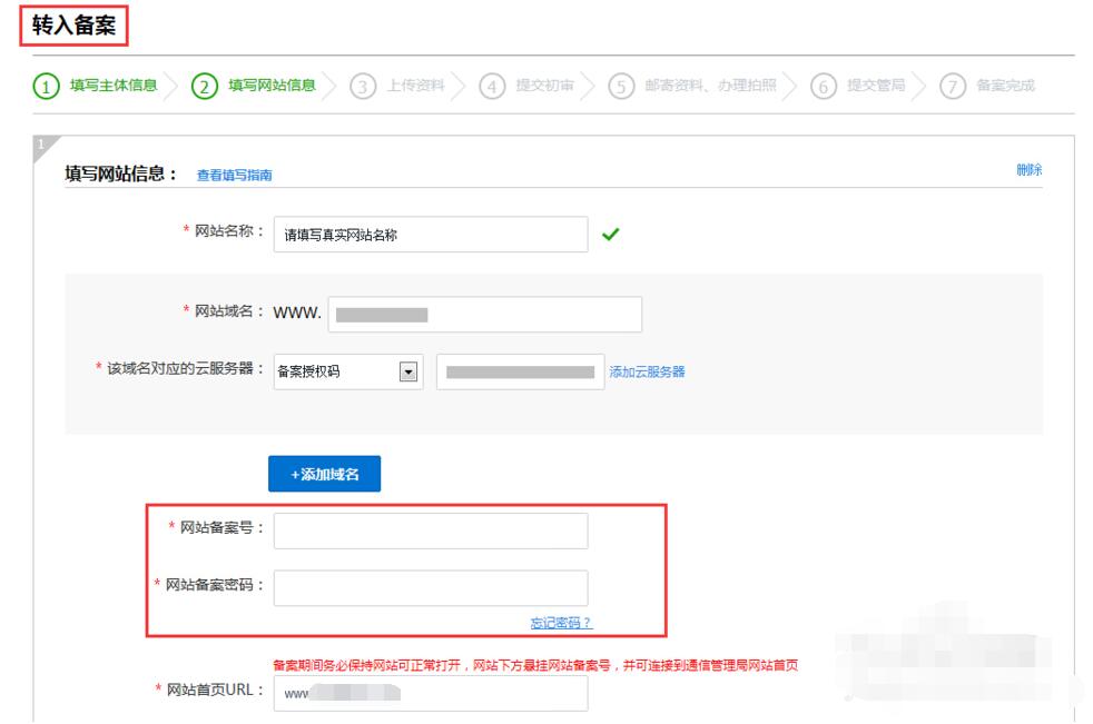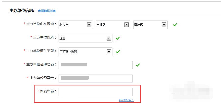 ps:有备案号的域名,系统会系统判断,需要填写备案密码,如下图: