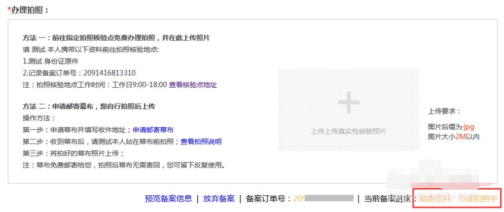 点击进入下一步,就可以看到邮寄资料的地址和份数,以及如何拍照。
