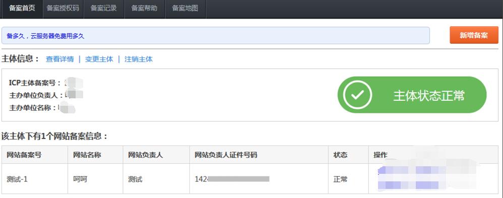 这样,整个备案流程就结束了,恭喜你备案完成。