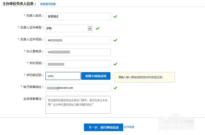 填写备案的主体信息,也就是说谁办的这个网站,个人备案的话就是您本人,企业备案的话就是要填写企业的信息。