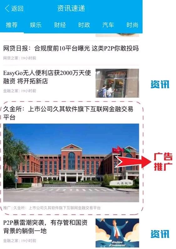 4、资讯信息流中可插入广告实现流量变现。对于信息流广告来说,广告形式多样,广告位样式较多,广告位丰富(用户在App下拉浏览资讯时,可在资讯间隔中不断设定广告位);广告亲和性强,精准度高(基于用户画像),非常易于受众接受。