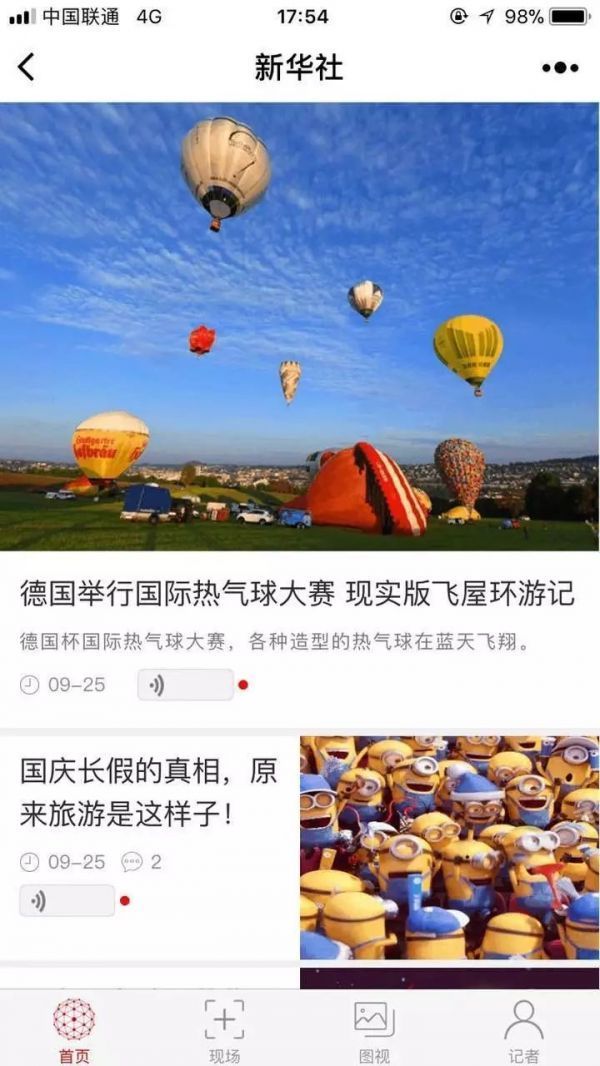 在“新华社微悦读”小程序中,我们可以看到这样的设置:首页、现场、图视、记者。