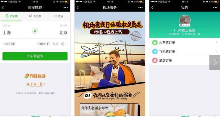 同程小程序是一款无需下载安装,只需扫描二维码即可实现产品订购和增值服务的应用,目前开放了火车票、飞机票、汽车票、酒店、景点等多个产品入口,并已全部完成小程序的搭建。在不久的将来,用户在到达火车站、机场、汽车站、景区、门店等场景时,可轻松实现扫码购票和到场服务。