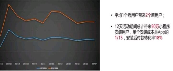 通过社交立减金获取新用户的成本是app的1/15,转化率18%,该功能可以帮助大量电商商家通过老带新的方式获得业绩的倍增甚至更高的增长率。