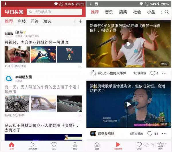 本质上公众号和今日头条是两种不同类型的内容分发模式:公号采用去中心化的订阅形式+基于社交关系链的分发;而今日头条是用信息流的下拉刷新+机器算法做个性化推荐。