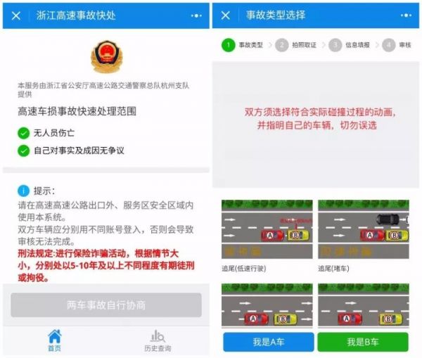 查询和处理交通违章,一直是有车一族的痛点。“浙江高速事故快处”是十一前推出的小程序。如果车主在高速公路遭遇了车祸,在人员未受伤、双方责任明晰、车辆依然能开动的情况下,就能使用该系统进行自助处理。