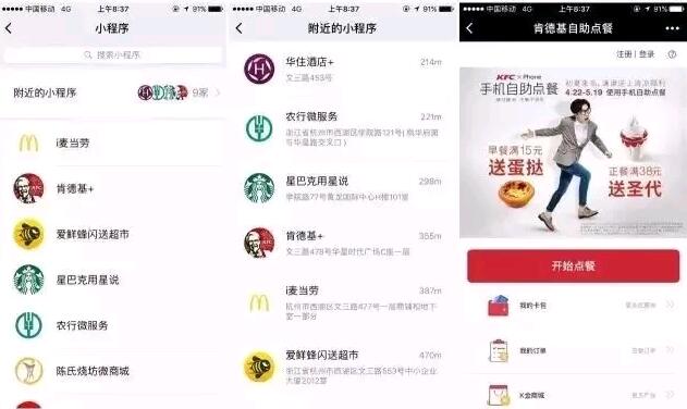 例如用户要在周边查找餐馆,直接打开附近的小程序,发现周边的餐馆,进店消费并买单,所以未来附近的店将是商家非常大的流量入口。