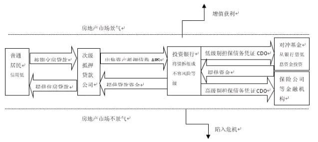 信用低的购房贷款者在房产增值的预期和次级抵押贷款公司一系列优惠购房贷款政策下,超出能力激进购买房屋,并向次级抵押贷款公司办理长期房屋贷款,按期交房贷款。