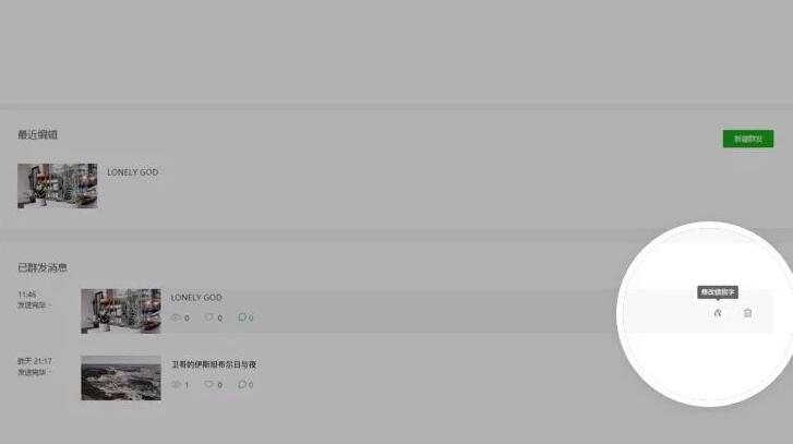 登录公众平台,在首页已群发列表,可以看到错别字修改入口。点击修改按钮,打开编辑页面。