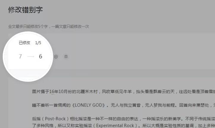 为了给运营者、读者提供更友好的编辑、阅读体验,公众平台新增修改文章错别字功能,支持运营者对已群发文章进行小范围修改。每篇文章允许被修改一次,修改范围仅限正文内五个字。