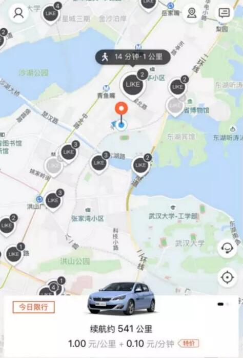 据报道在广州,立刻出行有近1000个取还车网点,广州城区内起码有80%的用户可在500米内找到共享汽车。