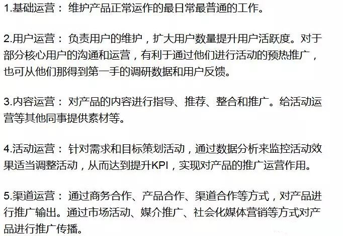 我们把运营的分工和种类进行细分,运营可以分为: